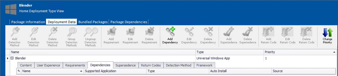 You can use the Dependencies subtab to view or edit a list of other packages in the Application Catalog that must also be deployed with this package onto the target machine in order for this package to successfully operate.