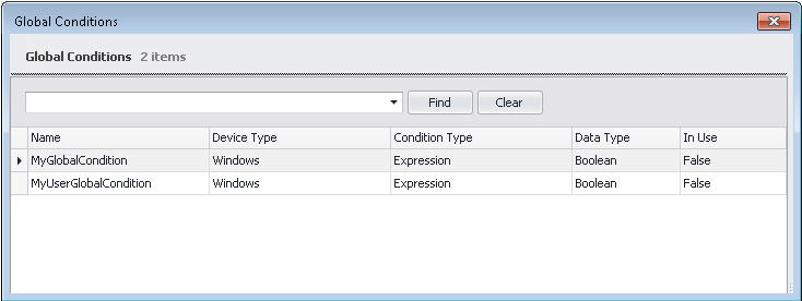 Search BoxUse this box along with the Find button to filter a large list of global conditions.