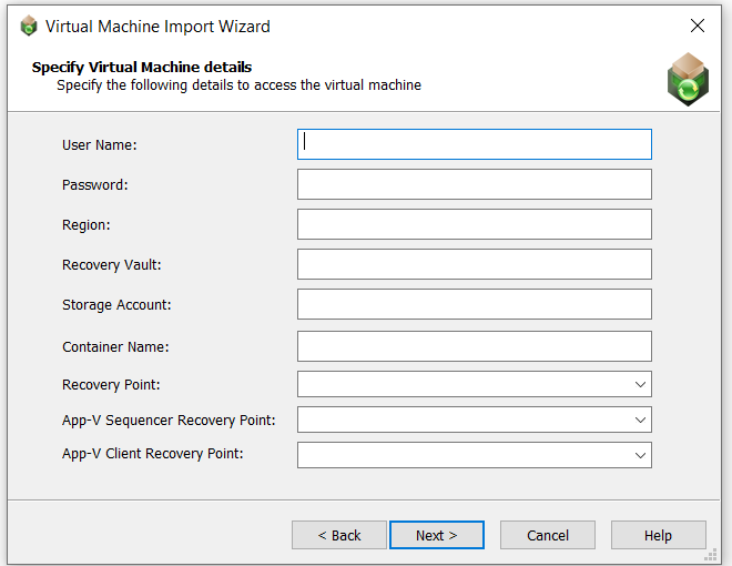 6. Based upon your selection on the Select Virtual Machine Source panel, enter the following information: